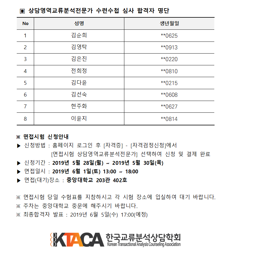 [2019³â »ó¹Ý±â »ó´ã¿µ¿ª±³·ùºÐ¼®Àü¹®°¡ ¼ö·Ã¼öø ÇÕ°ÝÀÚ ¹ßÇ¥]