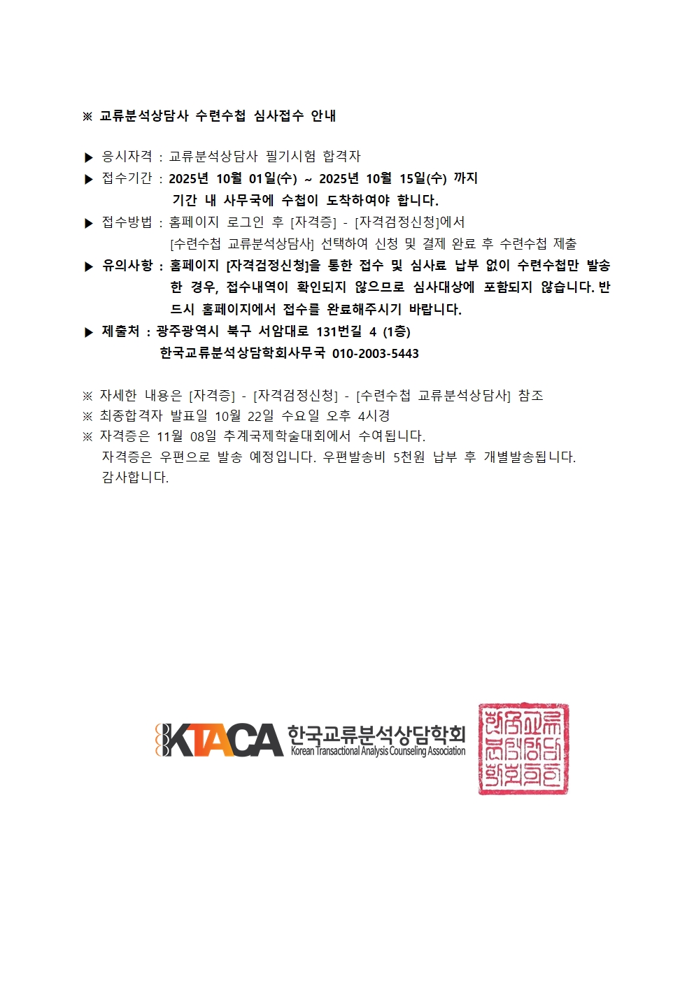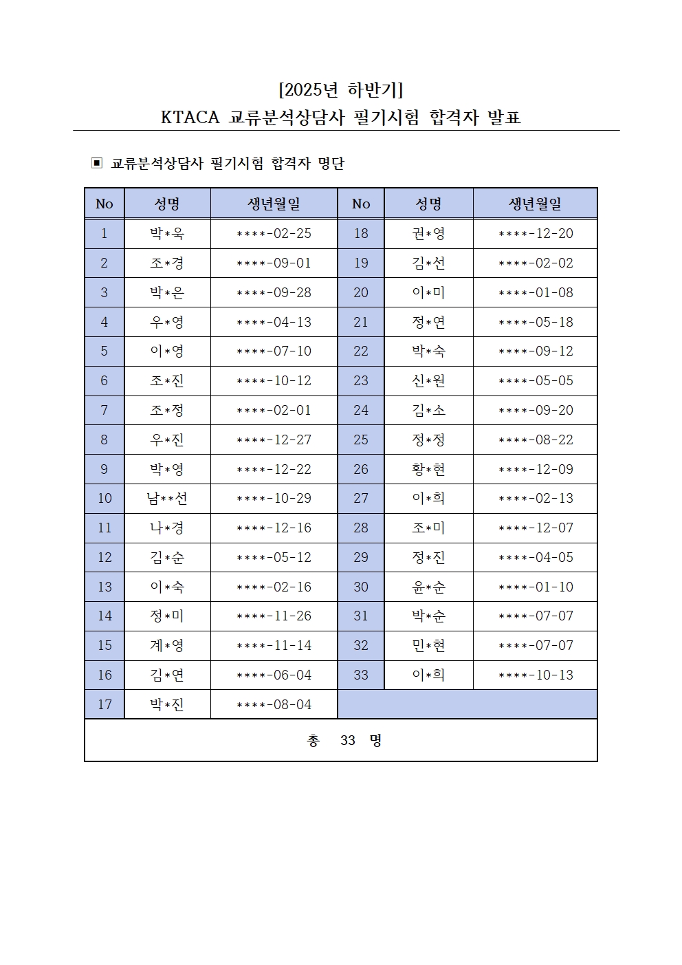 - 2025³â ÇϹݱâ KTACA ±³·ùºÐ¼®»ó´ã»ç Çʱâ½ÃÇè ÇÕ°ÝÀÚ ¹ßÇ¥