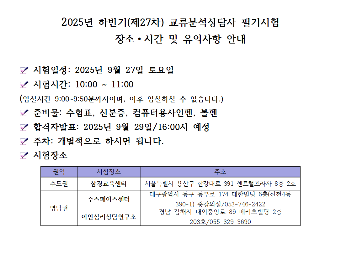 - 2025³â ÇϹݱâ(Á¦27Â÷) ±³·ùºÐ¼®»ó´ã»ç Çʱâ½ÃÇè Àå¼Ò∙½Ã°£ ¹× À¯ÀÇ»çÇ× ¾È³»