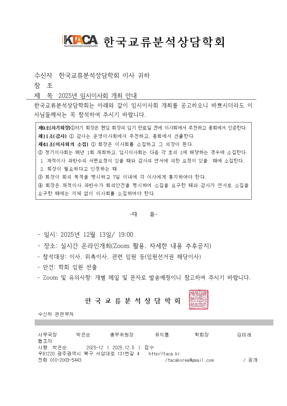| [ÀÌÀü] 2025³â ÀÓ½ÃÃÑȸ °³ÃÖ ¾È³» 2025-12-05 |