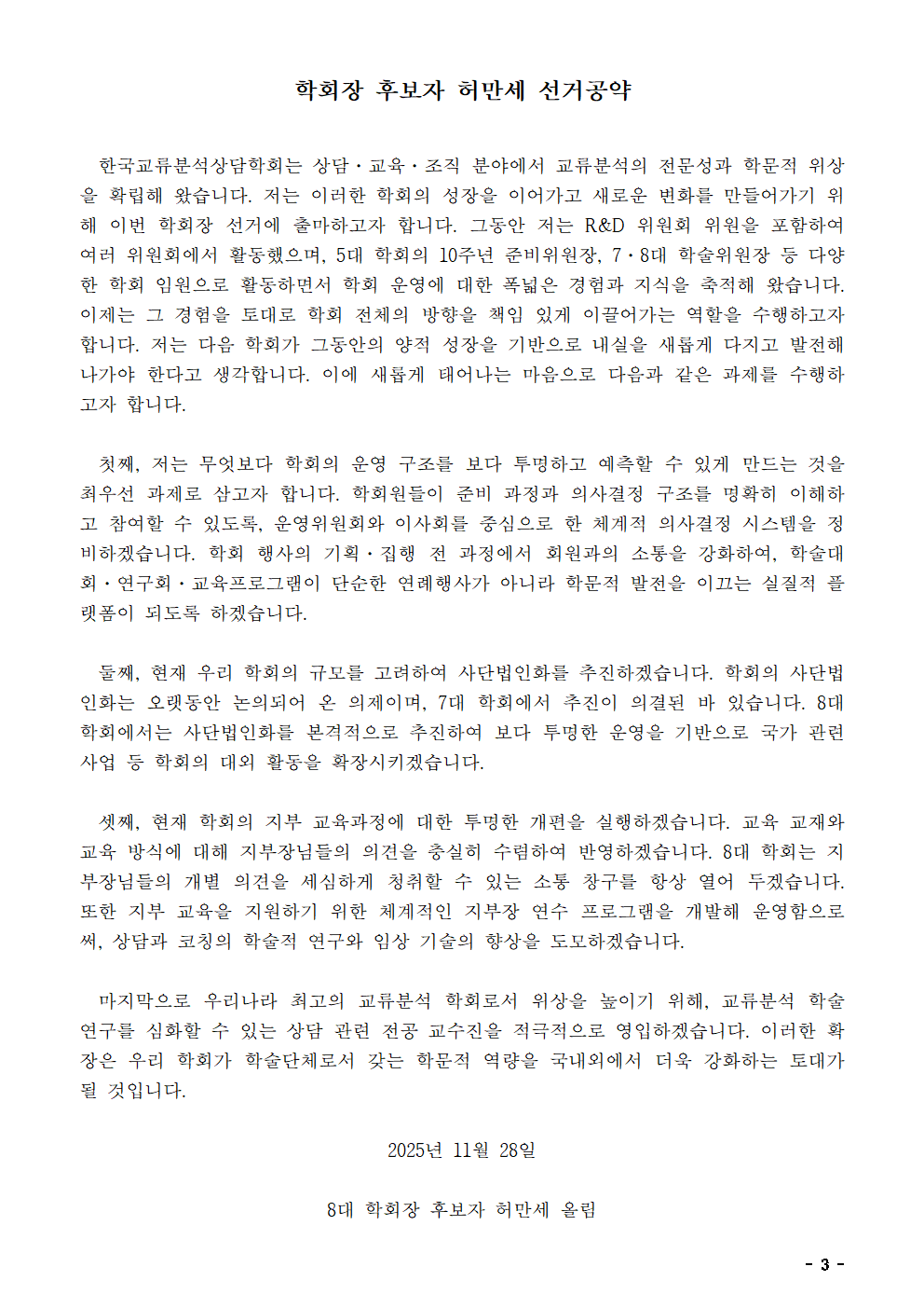 | [´ÙÀ½] Á¦8´ë ÇÐȸÀå ÀÔÈĺ¸ÀÚ ÇÁ·ÎÇÊ ¹× ¼Ò°ß¼ °ø°³(±èÀå.. 2025-11-28 |