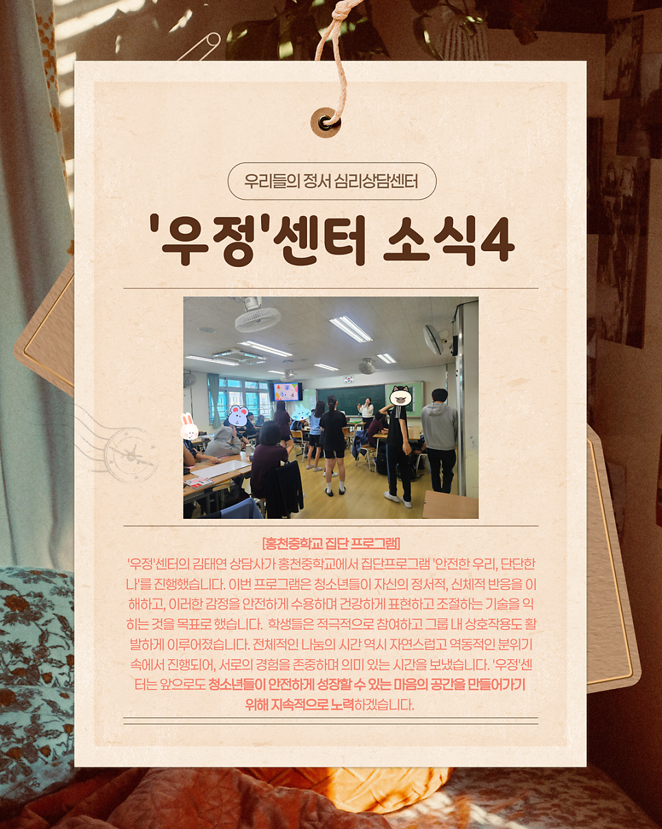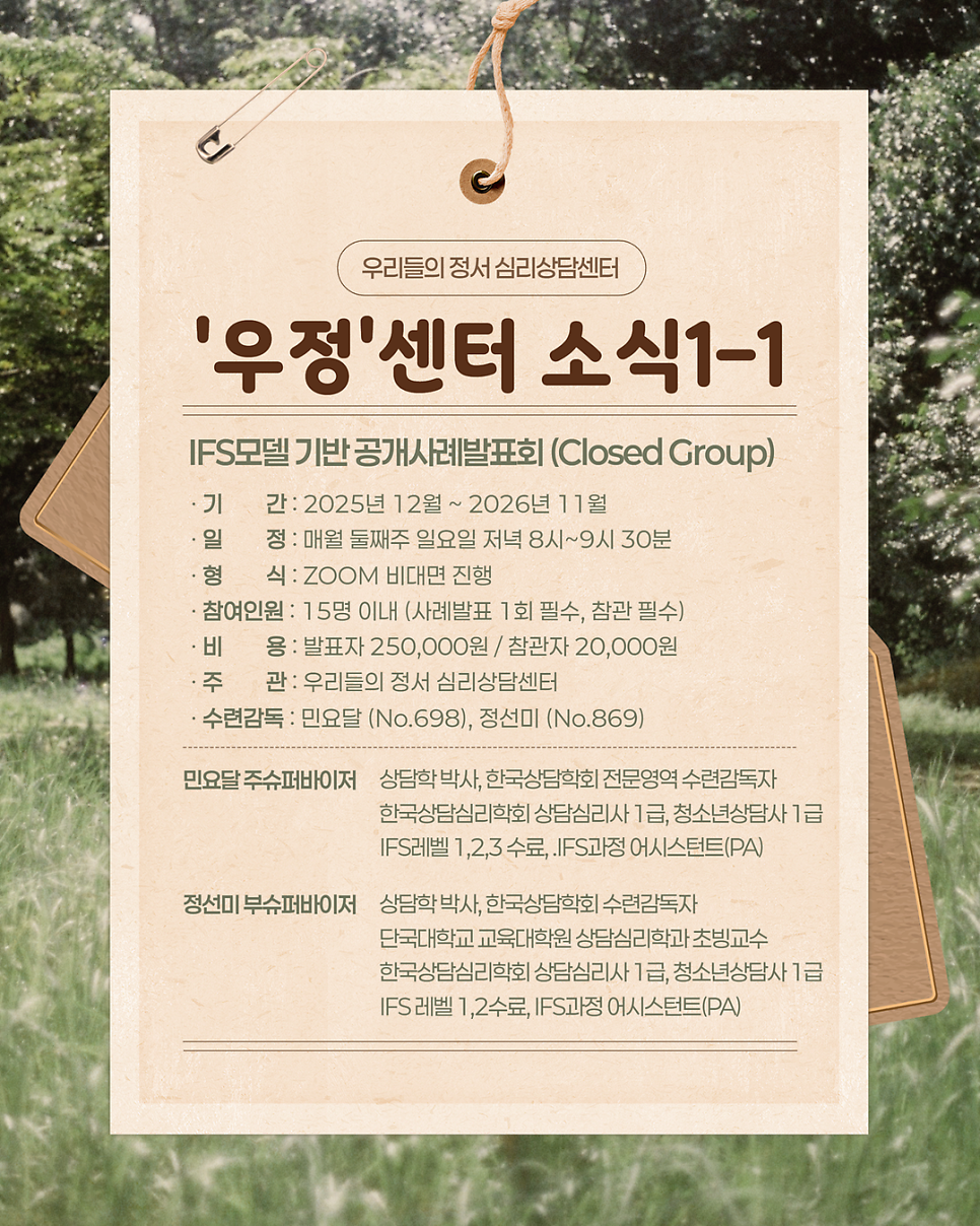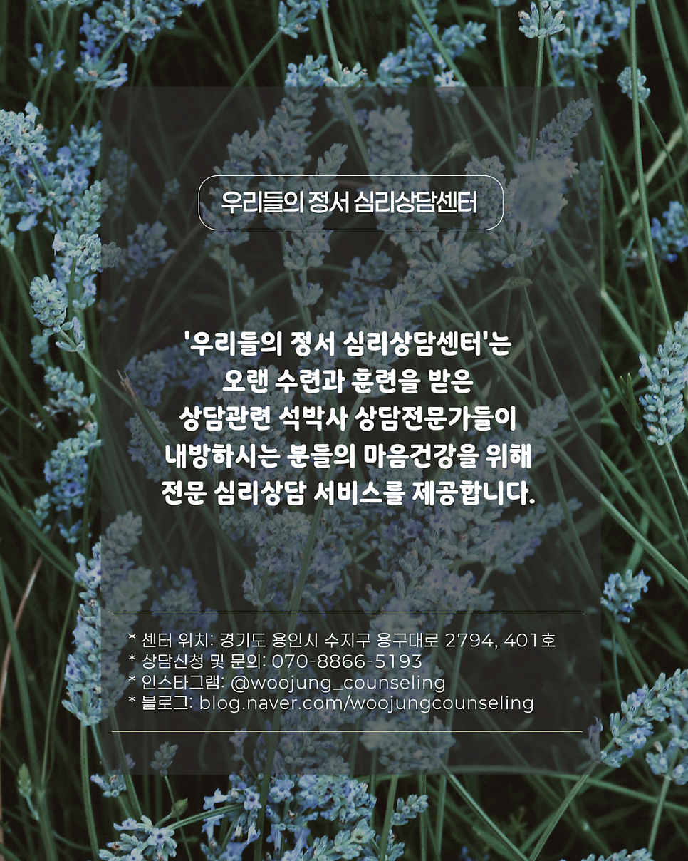 - ÀÛ¼ºÀÚ ¿ì¸®µéÀÇÁ¤¼½É¸®»ó´ã¼¾ÅÍ µî·ÏÀÏÀÚ 2025-10-17 Á¶È¸¼ö 43